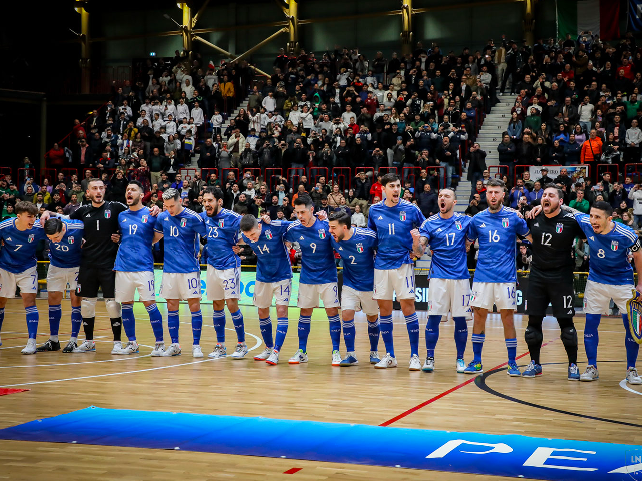 Christopher Cutrupi, al secondo gol in Nazionale commenta: “Abbiamo fatto una bella gara, gestendola bene, peccando sulle palle inattive, ma il pubblico è stato il nostro sesto uomo in campo. È stata una grande prestazione di cuore, davanti a un palasport mai visto così pieno, un’emozione indescrivibile”.