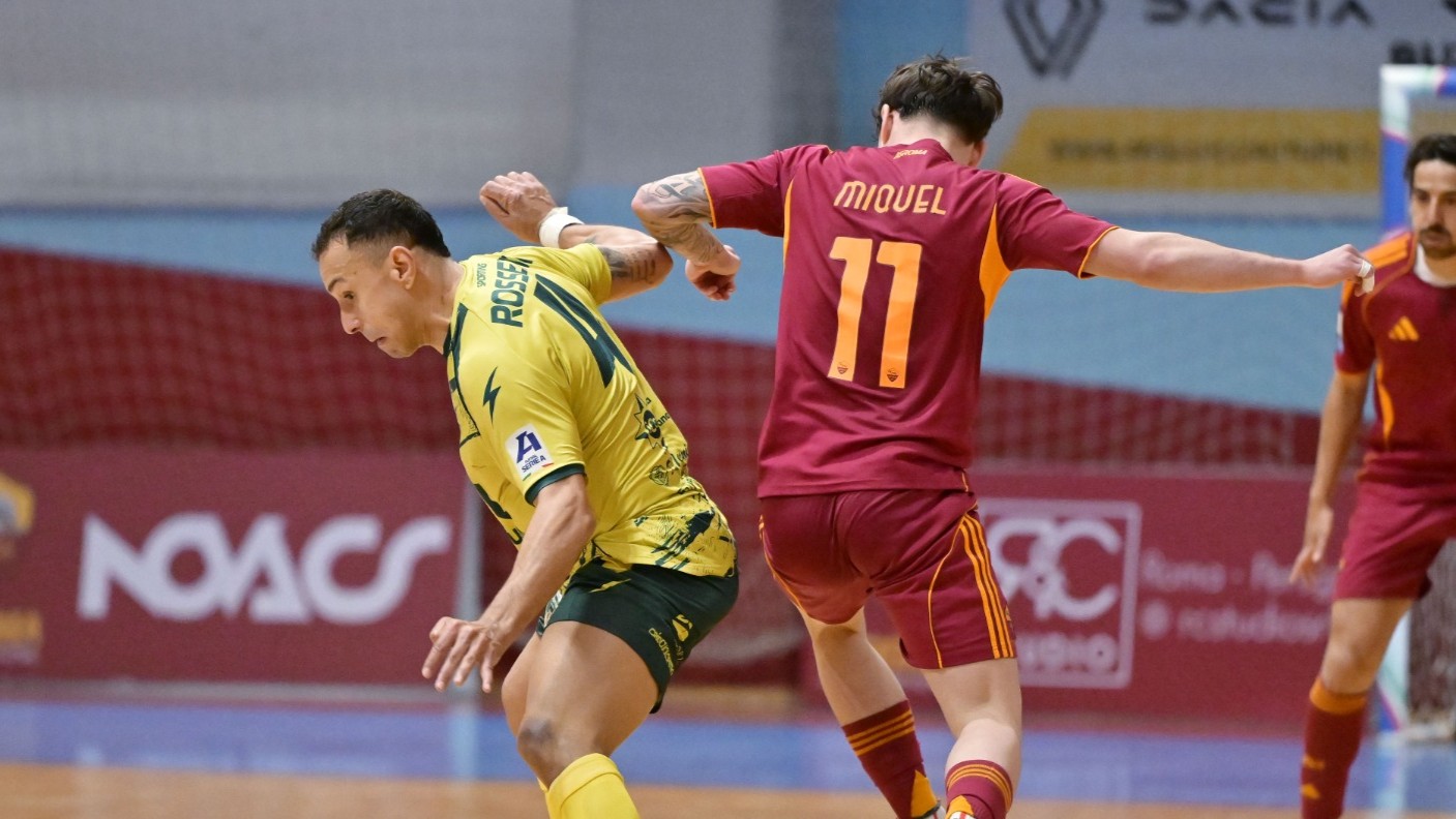 Lo Sporting Sala Consilina porta a casa un pareggio dal PalaMalfatti, un segno “X” dal sapore di beffa per i draghi che falliscono l’aggancio a pari punti alla Roma. Tre le reti di vantaggio al riposo per il team di Conde con Arillo (rigore), Fatiguso e Diaz, poi al 7′ della ripresa il poker targato Rossetti. In un lampo il gol di Fortino per l’1-4, poi ancora Robocop ne fa altri due – di cui uno dal dischetto – nello spazio di un minuto e mezzo e rimette i giallorossi a contatto. Arillo riporta le distanze a più due, un’autorete sfortunata di Lo Conte vale il 4-5. A 57″ dalla sirena ancora Fortino firma il definitivo 5-5 ribadendo in rete da opportunista. Invariate le distanze tra le due compagini con i giallorossi quinti a 41 punti e lo Sporting a tre lunghezze di ritardo.