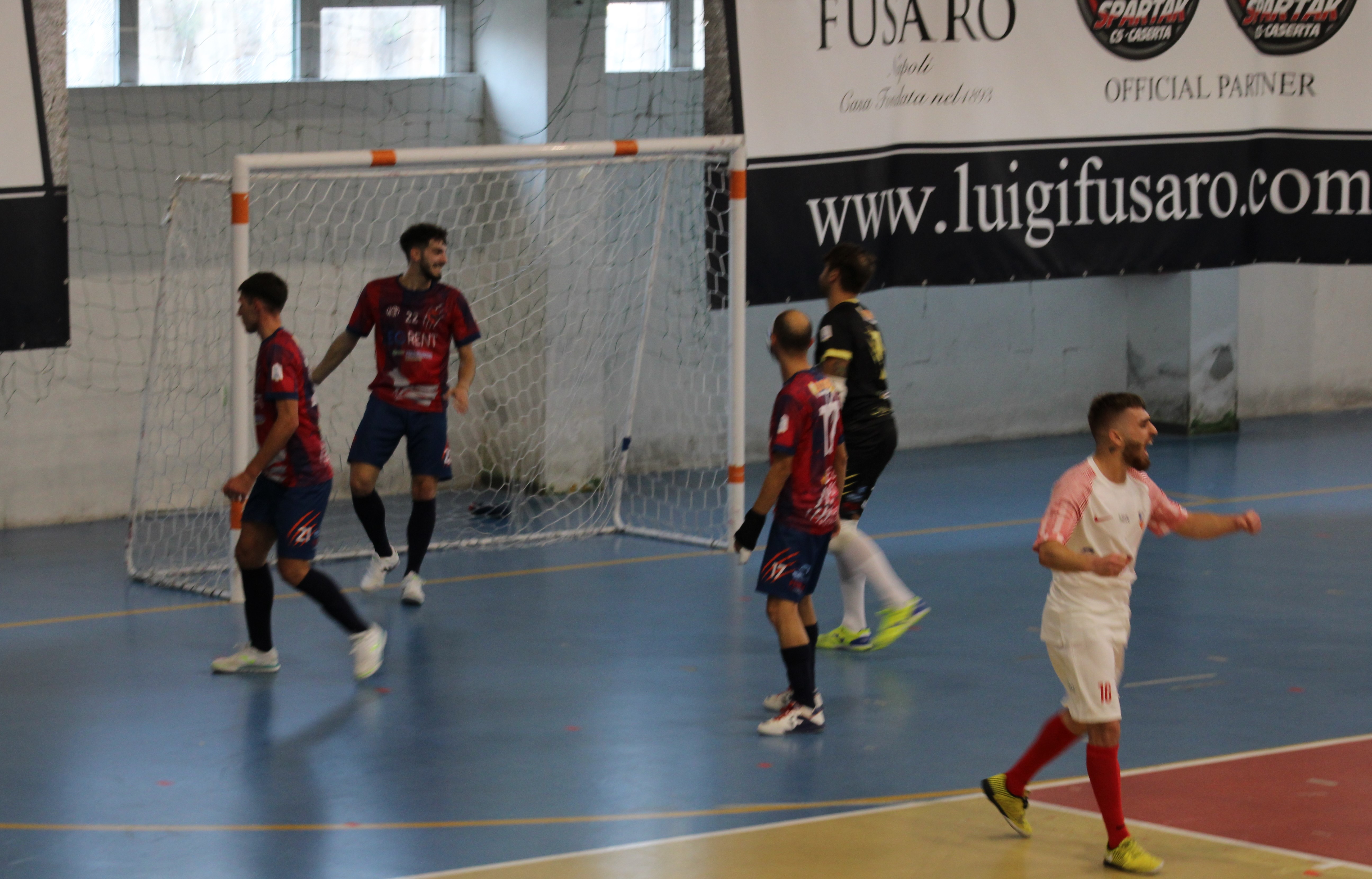 La prima chance è per Sabino, dall’altra parte Bico si fa ipnotizzare tutto solo dinanzi a Fuschino. Faraone da due passi si divora un’altra possibilità per rompere il ghiaccio, Russo rischia di approfittare di un rimpallo ma Fiore è vigile. Ci provano Avella ed Imparato, ma sono i locali a passare avanti con la conclusione vincente di Saul su assist di Cianciola (1-0). Mennella salva su Francesco Russo, gli uomini di De Andrade però non si scompongono e pervengono al pari: punizione di capitan Bico e passaggio per Amirante, Fuschino para ma Campolongo è lesto a ribadire in rete per l’1-1. Mennella però, in ritardo sullo spagnolo, si becca il doppio giallo e va anticipatamente sotto la doccia: in inferiorità numerica l’estremo difensore ospite e Faraone sono miracolosi su Sabino, ancora Fiore coi piedi sull’ex centrale dello Spartak. Tuttavia non può nulla sulla botta ravvicinata proprio di Sabino che vale il 2-1. Il numero uno rossoblù si esalta su Bobcat Russo. I casertani trovano anche il tris nuovamente con Saul, Di Dato da fuori accenna una reazione. Super Fuschino sul tacco proprio del centrale con la 20 sulle spalle, è l’ultima emozione della prima frazione che si chiude sul doppio vantaggio per il team di Panniello.
