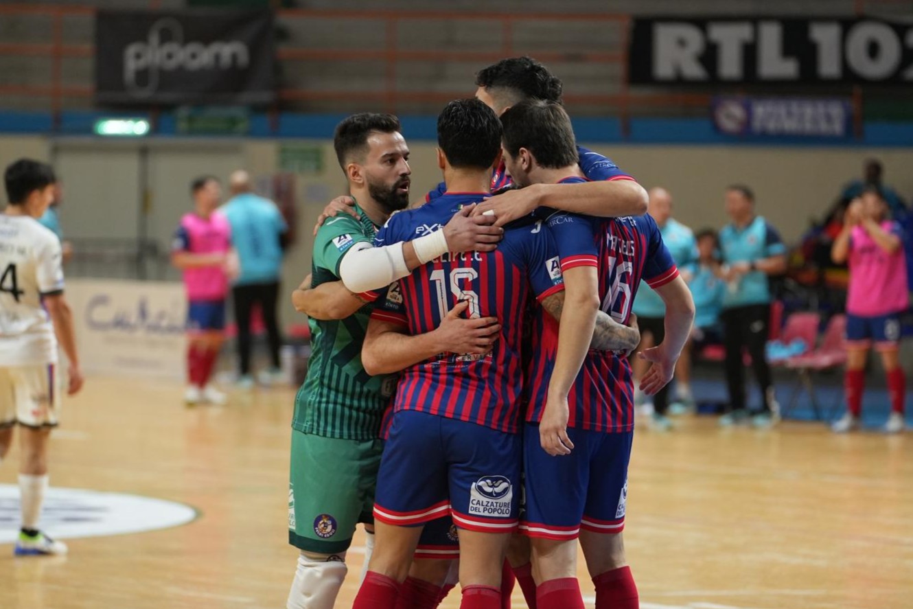 La Feldi Eboli conquista i tre punti nel match con la Meta Catania disputato al PalaSele a campi invertiti e riduce a sei punti il gap con la capolista. Apre le danze Mateus al 5′, riequilibra dopo un minuto Lahuerta e si va all’intervallo così sull’1-1. Nella ripresa l’espulsione per Musumeci e l’allungo delle volpi firmato Echavarria e Felipinho, con nel mezzo il rosso anche per Lavrendi. La Meta si rifà sotto col power play con Bocao ma a 36 secondi dal gong è Dalcin a porta sguarnita a mettere il sigillo al successo rossoblù.