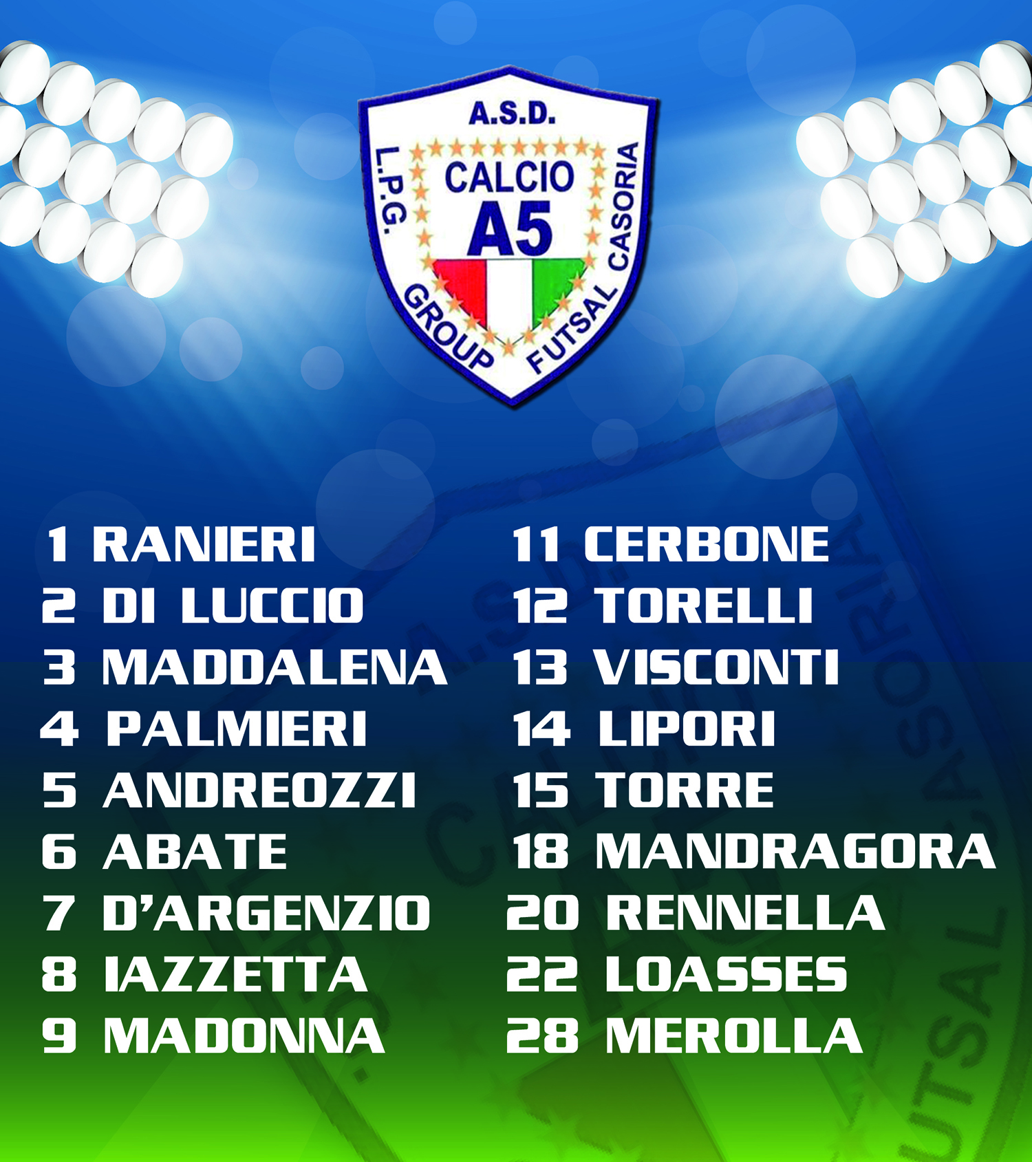 La società, inoltre, comunica che Sportika sarà il partner tecnico nella prossima stagione e ufficializza anche i numeri di maglia: 1 Davide Ranieri, 2 Antonio Di Luccio, 3 Maddalena, 4 Palmieri, 5 Andreozzi, 6 Abate (Maravilla), 7 D’argenzio, 8 Iazzetta, 9 Madonna, 11 Cerbone, 12 Torelli, 13 Visconti, 14 Lipori, 15 Torre, 18 Mandragora, 20 Rennella, 22 Loasses, 28 Merolla.