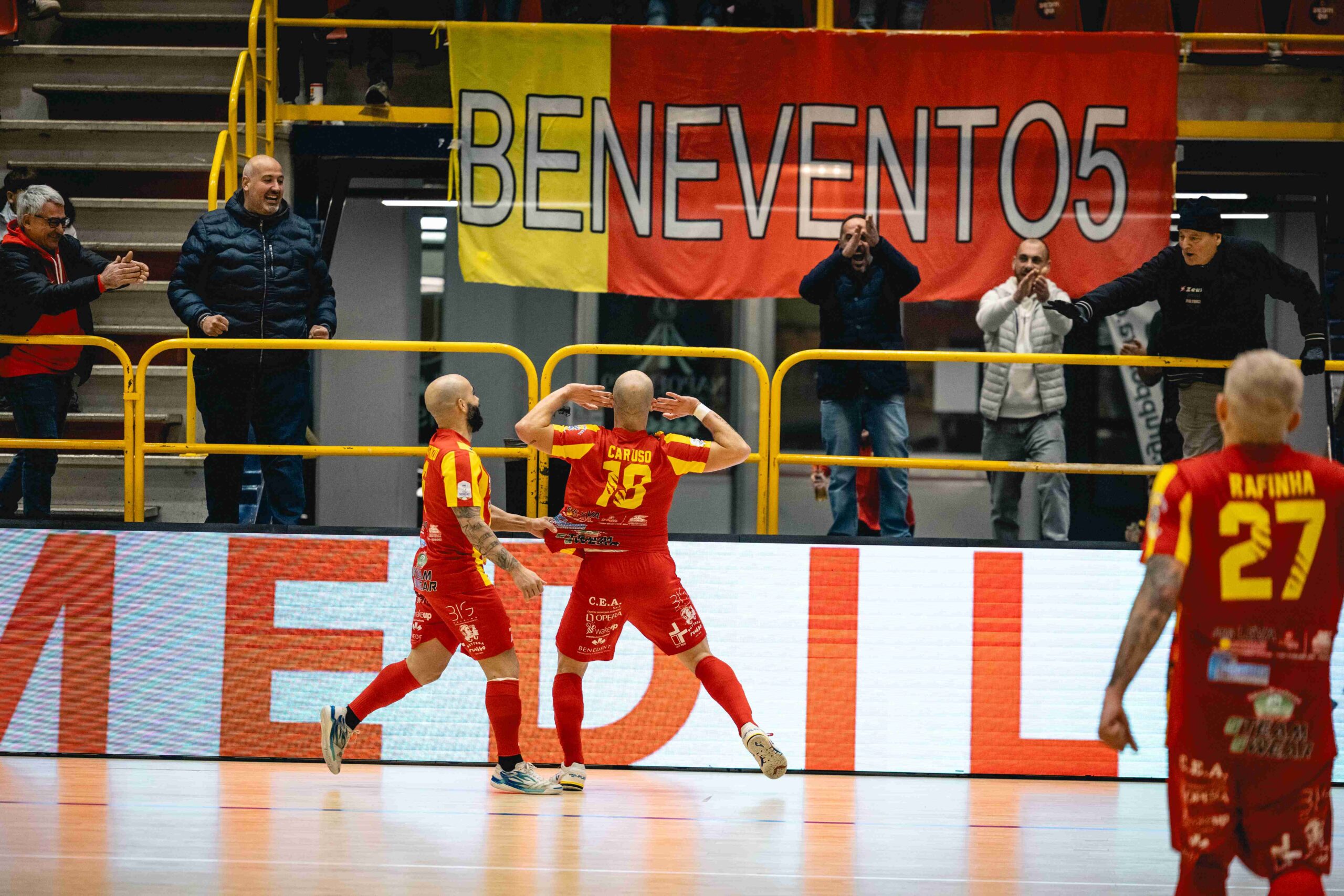 Il Benevento 5 è campione d’inverno con un turno d’anticipo. Al PalaTedeschi i giallorossi riprendono immediatamente in mano il filo del proprio cammino battendo la Lazio con il punteggio di 6-4: già nel primo tempo in 9′ Rafinha e due volte Caruso siglano il 3-0. Di Dominguez il 3-1 della prima frazione.