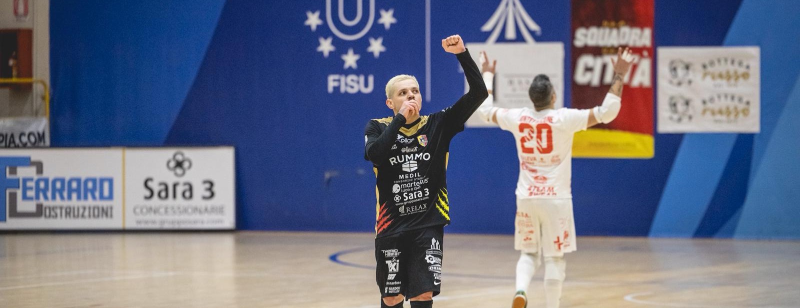 Buona la prima di Coppa per il Benevento. Ci vogliono i supplementari al PalaTedeschi contro la Futura dopo il 3-3 dei quaranta effettivi, e nel secondo di questi il goal di Rafinha con gli ospiti che avevano schierato il quinto di movimento a 9″ dalla fine. Cinque secondi più tardi il definitivo 5-3 di Caruso. Per i ragazzi di Scarpitti New Taranto o Academy Pescara la prossima avversaria.