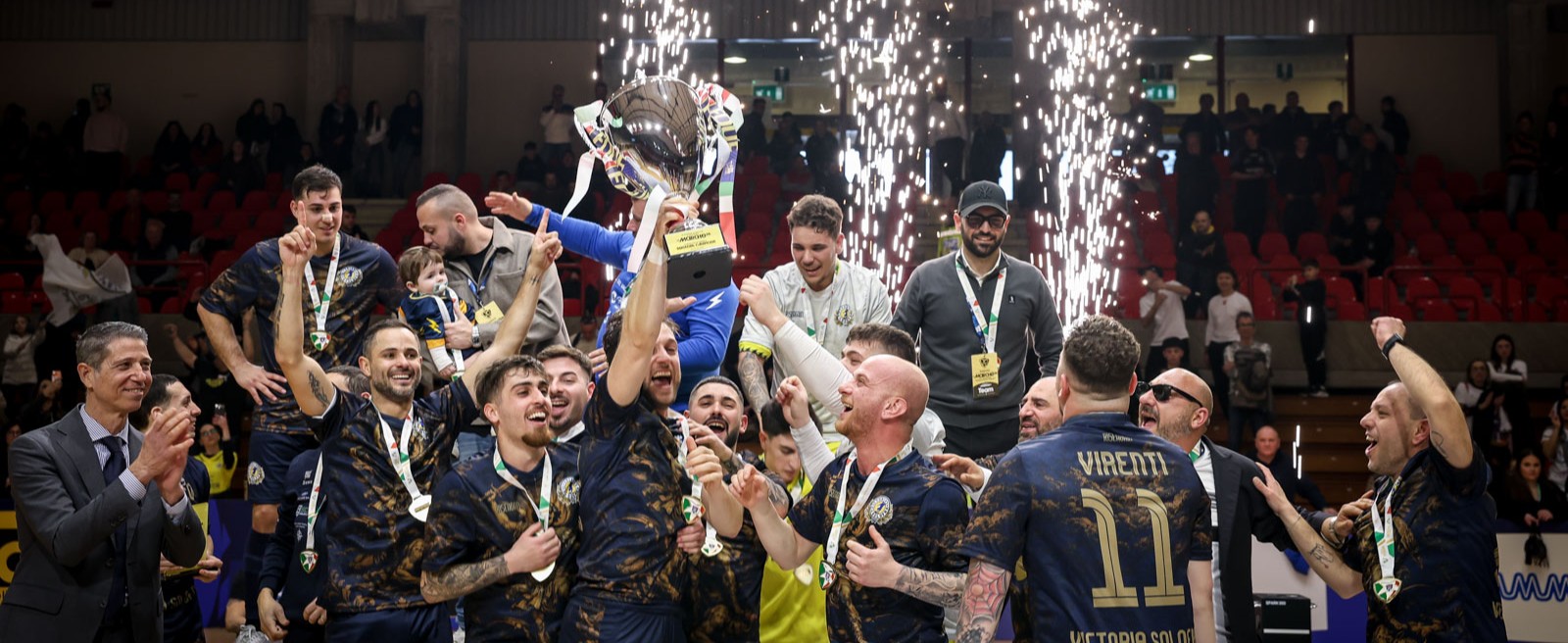 Una partita infinita, ricca di colpi di scena e cambi di fronte. Il goal scritto nel destino di Antonio Orvieto: lui con la fascia al braccio, solofrano doc, che alza lo sguardo al cielo pochi giorni dopo la festa del papà ed esulta con la rabbia di chi voleva mettersi alle spalle i tanti, troppi, infortuni. Il Victoria riporta in Campania la Coppa Italia di C1, che mancava dal 2009 con l’Isef, battendo al PalaTriccoli il Cerreto d’Esi per 7-4: al fischio finale la gioia dei ragazzi di Luciano Miele, che hanno tagliato il primo traguardo e sostanzialmente anche il secondo con l’accesso di diritto alla prossima Cadetteria.