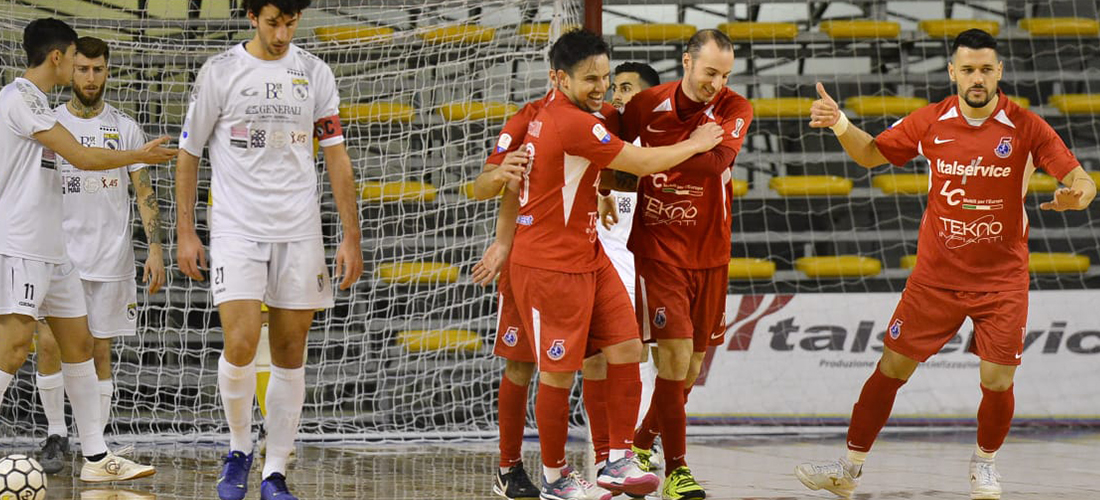 Non c’è partita al Pala Nino Pizza. Complice anche qualche defezione di troppo, il Lido di Ostia non riesce a tener testa all’Italservice Pesaro che, tirato a lucido, domina sin dalle primissime battute: Salas sblocca dopo appena mezzo minuto, Cuzzolino raddoppia al terzo, Borruto fa 3-0 all’ottavo e capitan Tonidandel di fatto chiude la pratica già al 12esimo con il 4-0. Nel secondo tempo suona la stessa musica: altri quattro goal e i tre punti conquistato permettono al Pesaro di salire a un solo punto di distanza dall’Acqua&Sapone (che ha però ancora una giornata in meno rispetto ai biancorossi).