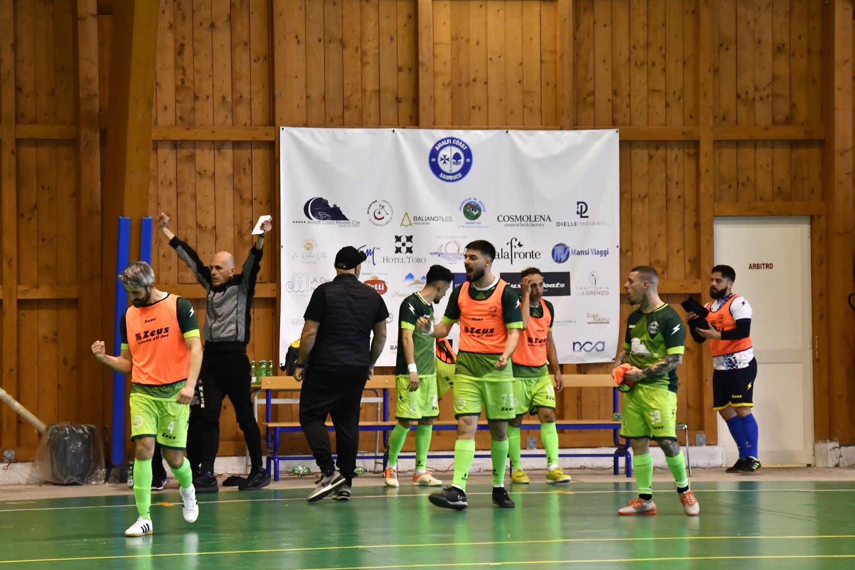 L’Amalfi Coast è padrone del campo e allora Mister Torre cala la carta del power play ma le occasioni migliori sono ancora per Monnola che va vicino al gol per due volte. Nella ripresa sono ancora i bianco blu ad avere il pallino del gioco: è ancora Di Benedetto, servito da Ferraro dopo una gran discesa, a tirare addosso a Liccardo. Il CP già dal quarto schiera quando può il power play. Al 10° è Formisano, anche per lui una partita di quantità e qualità, a punire dalla metà campo dopo un gran recupero palla. Il 3 a 0 fa sbandare i bacolesi che dopo poco più di un minuto incassano il quarto gol griffato Monnola. Mister Torre striglia i suoi che, ancora una volta, dimostrano di essere una squadra solida e di grande carattere. È Maddalena al 12° ad accorciare le distanze. I ritmi salgono così come l’agonismo. Al 16° è Russo a colpire un palo e ad impegnare severamente Liccardo. Gli ultimi 4” sono tutti marchiati CP che fa tremare i tanti tifosi in tribuna, prima con Abate che appostato sul secondo palo sigla il 4 a 2 e poi con Cavaliere il definitivo 4 a 3.