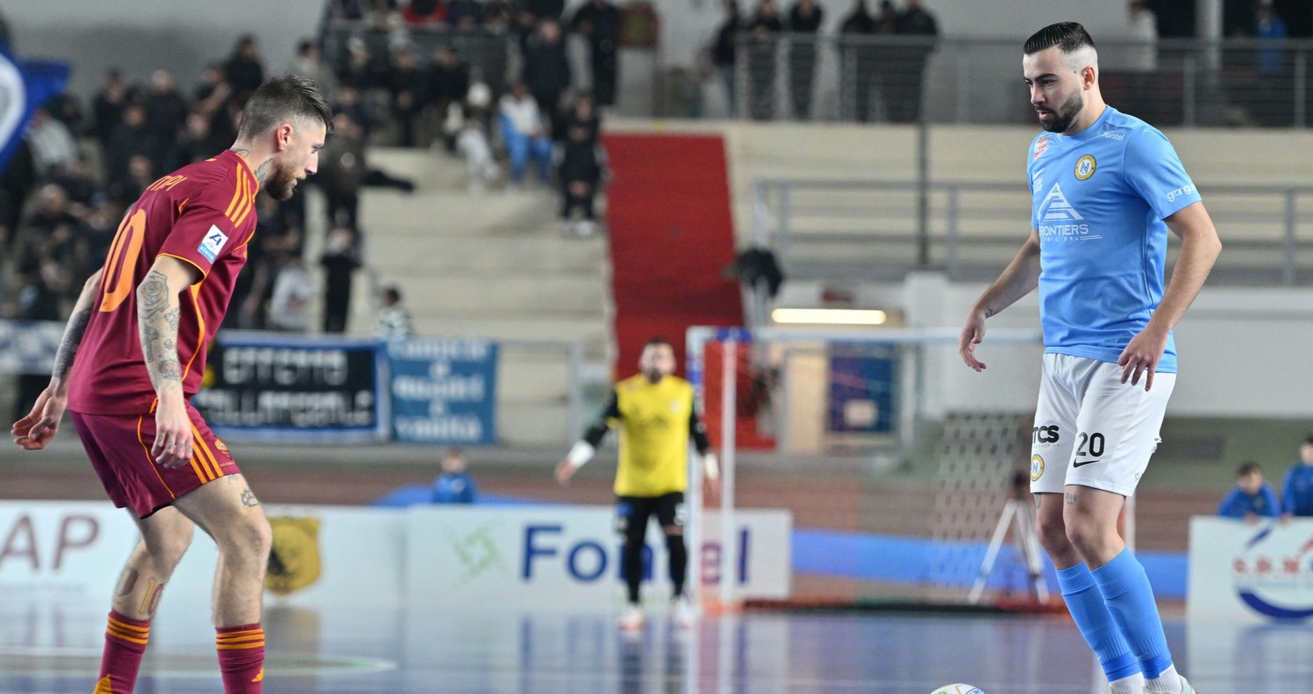LA PARTITA. Ciccio Angelini deve rinunciare a De Gennaro, ma recupera Salas. Fuori Bolo dai dodici, nel quintetto di partenza Bellobuono, Perugino, Borruto, Bortoletto e Guilhermao. Prima chance per Miquel che spreca dinanzi a Bellobuono, serpentina del Cobra in transizione e allungo di Fionchetti sull’altro fronte. Poi il subentrante Ciaralli si oppone a Grasso. Volée di Borruto, servito da corner, ancora Ciaralli superlativo sul tap-in di Perugino. Dall’altra parte il petto del portiere della Nazionale frena Biscossi. Azzurri nuovamente pericolosi su angolo con Chino, successivamente doppia chance ravvicinata per Guilhermao. Il solito Borruto ad eludere gli avversari con il corpo: Ciaralli strepitoso con la manona sulla rasoiata dell’argentino. Chi altri sfiora il bersaglio è Isgrò con un coast to coast. Erge il muro tra i pali il classe ’08 nel suo duello personale con il pivot brasiliano, si deve arrendere comunque a 19’18” sulla ripartenza letale di quest’ultimo, bravissimo a servire su un piatto d’argento l’1-0 a Bortoletto. Compagini così al riposo.