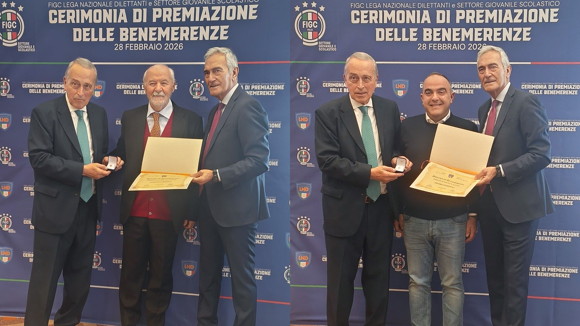 Si è tenuta questa mattina all’Hotel Hilton di Fiumicino (RM) la Cerimonia di Benemerenze FIGC Lega Nazionale Dilettanti e Settore Giovanile e Scolastico. I dirigenti campani sono stati premiati dal Presidente FIGC Settore Giovanile e Scolastico Vito Roberto Tisci, dal Presidente della Lega Nazionale Dilettanti Giancarlo Abete e dal Presidente FIGC Federazione Italiana Giuoco Calcio Gabriele Gravina.